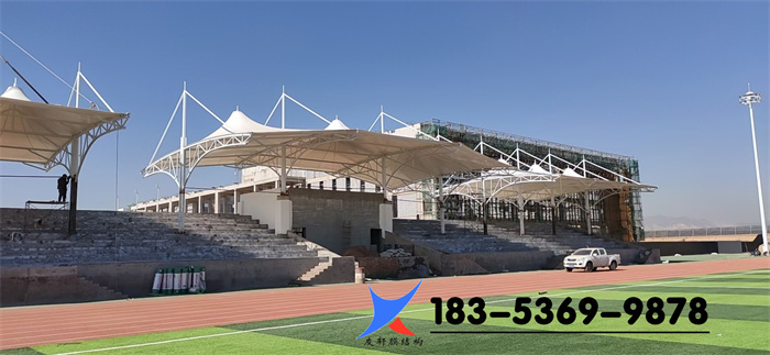 2、膜结构体育看台建造施工工期短,膜结构加工制造都是在工厂内完成的,缩短了施答工时间,从而也为企业节省了施工成本。
