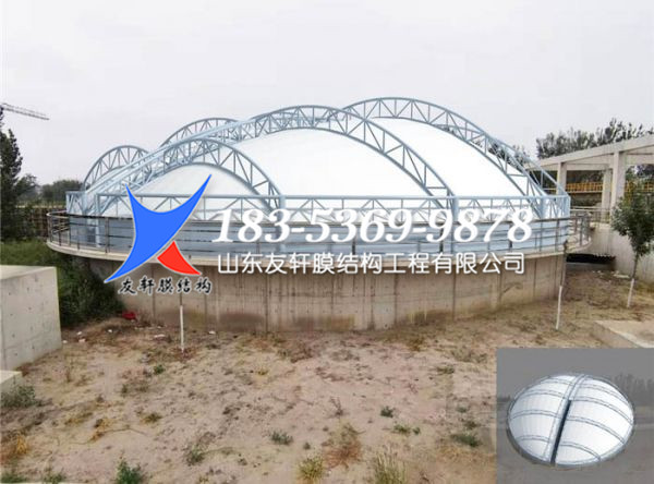 3、造价低。一般来说污水池的跨度一般较大,需要钢材多。使用反吊膜建筑可有效减少钢材使用率,从而降低成本。